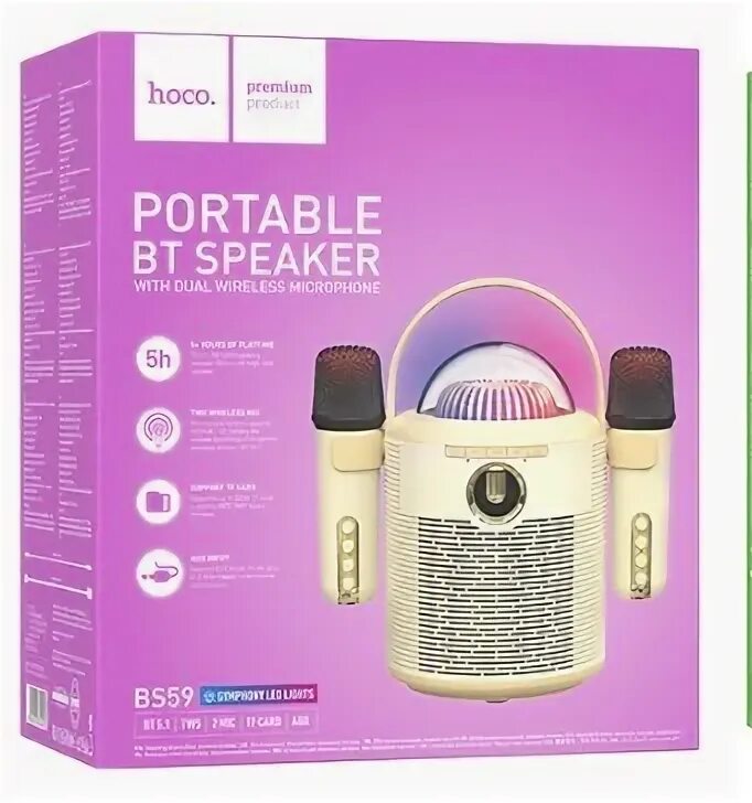 Мощность 10 Вт.Емкость аккумулятора 1800 мА*ч.Время зарядки 3 ч.Продолжительность автономной работы до 5 ч.Караоке.AUX.Bluetooth. microSD.USB.Тип разъема зарядки USB Type-C.