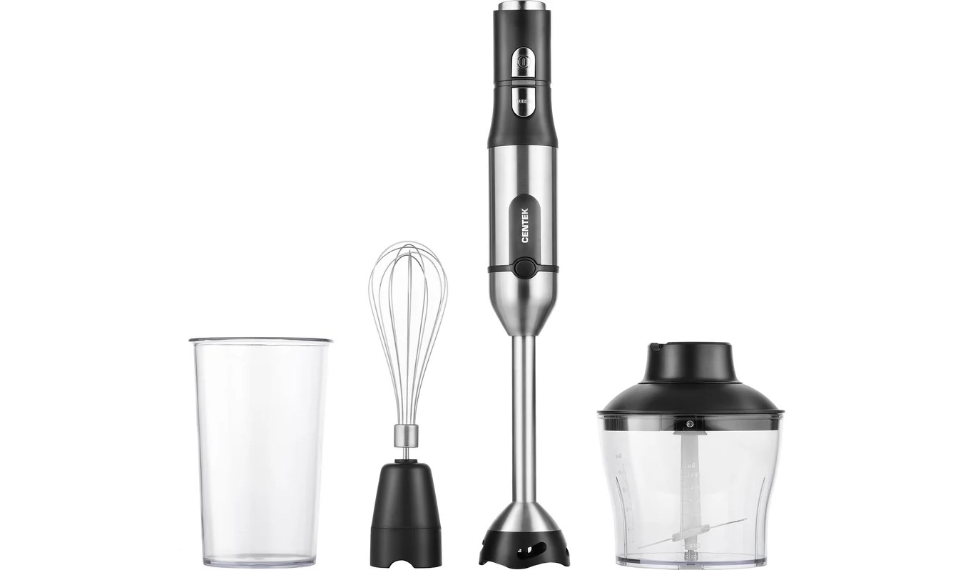 Блендер Centek CT-1332 черн. сталь 1500Вт, турбо режим, плавная регулировка, стакан, чоппер, венчик