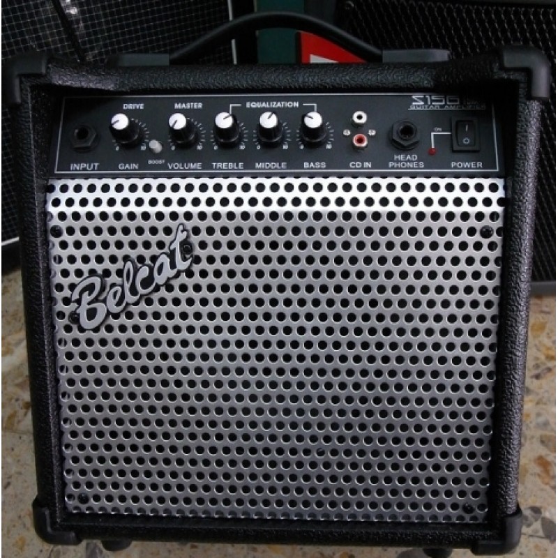 Гитарный комбоусилитель, BelcatВыходная мощность: 15Вт RMS (установленная максимальная синусоидальная мощность), @1% КНИ, 8 Ом.Динамик: 6,5" 4Ом.Чувствительность: 28мВ = 1KHz Volume & Tone Max.Уровень шума: -50дБ (Gain Max), -70дБ (Gain Min).Регуляторы: Gain (Drive), Select S/W, Volume, Treble, Middle, Bass.Потребляемая мощность: 19Вт.Размеры: 294мм х 300мм х 110мм.Вес: 3,5кг.