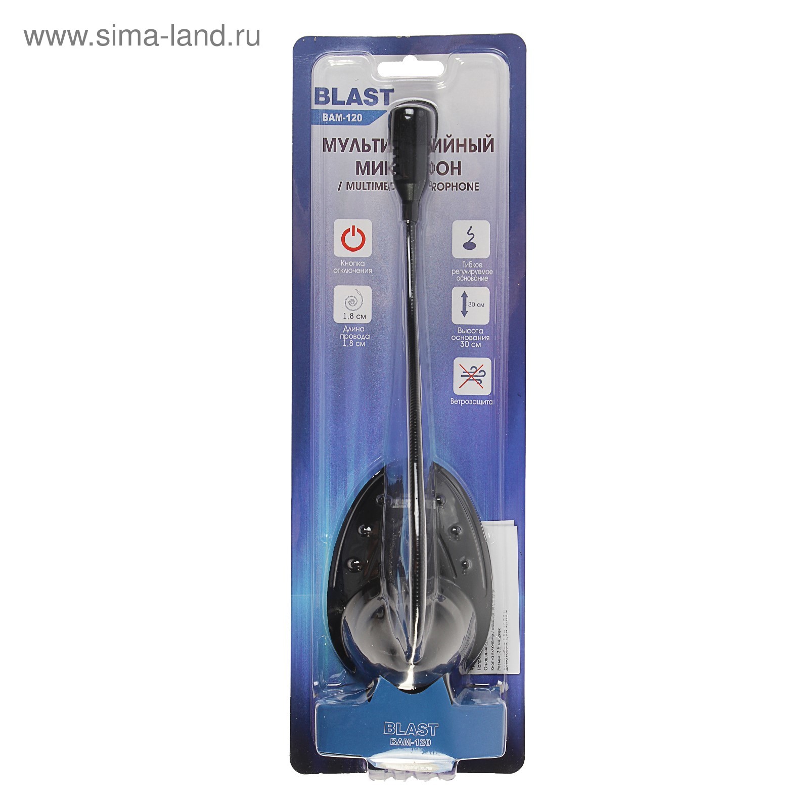 Особенности Гибкое регулируемое основание с высотой 30см, ветрозащита, кнопка включения / отключения сигнала