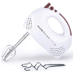 - Двойной набор насадок: два венчика для взбивания яиц и кремов, две насадки для размешивания тяжелого теста, смешивание жидкостей, замешивание теста, приготовление пюре, взбивание сливок и белков