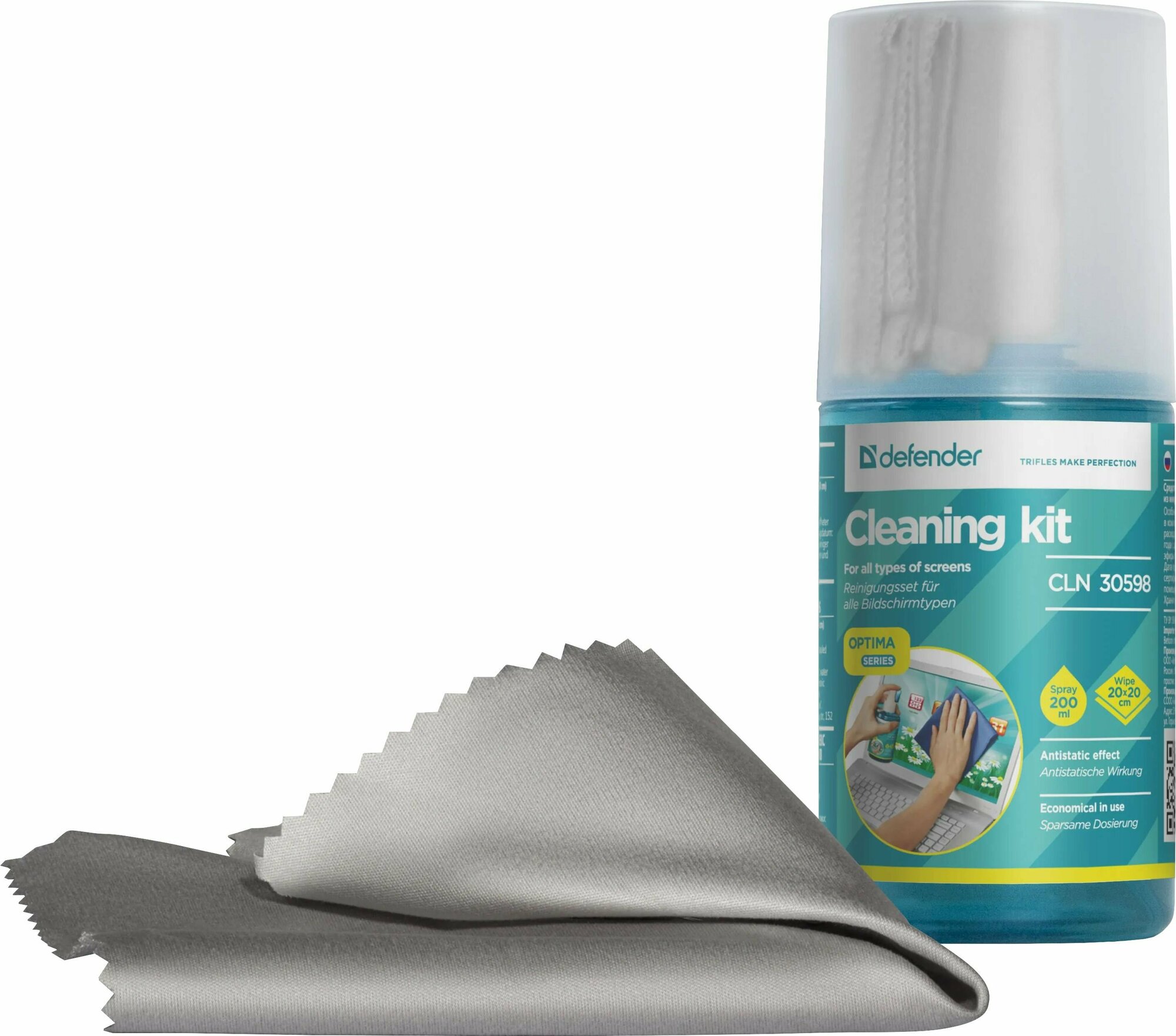 Очищающий комплекс для экранов Defender CLN 30598 Optima 200мл+микрофибра