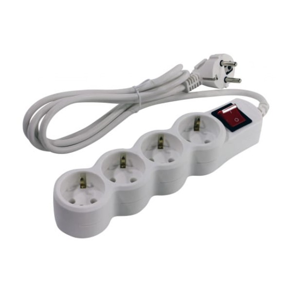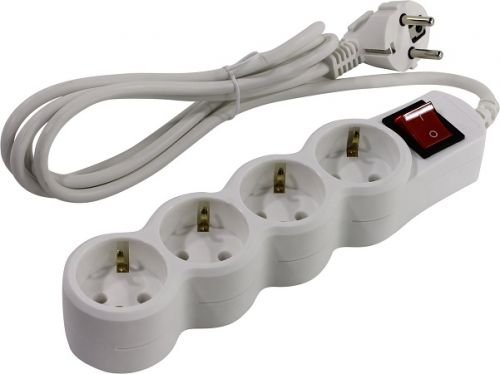 Сетевой фильтр с выключателем со световой индикацией, 4 розетки EURO, 3х0.75 мм2, 2.2 кВт, 10А, 1.8 м.