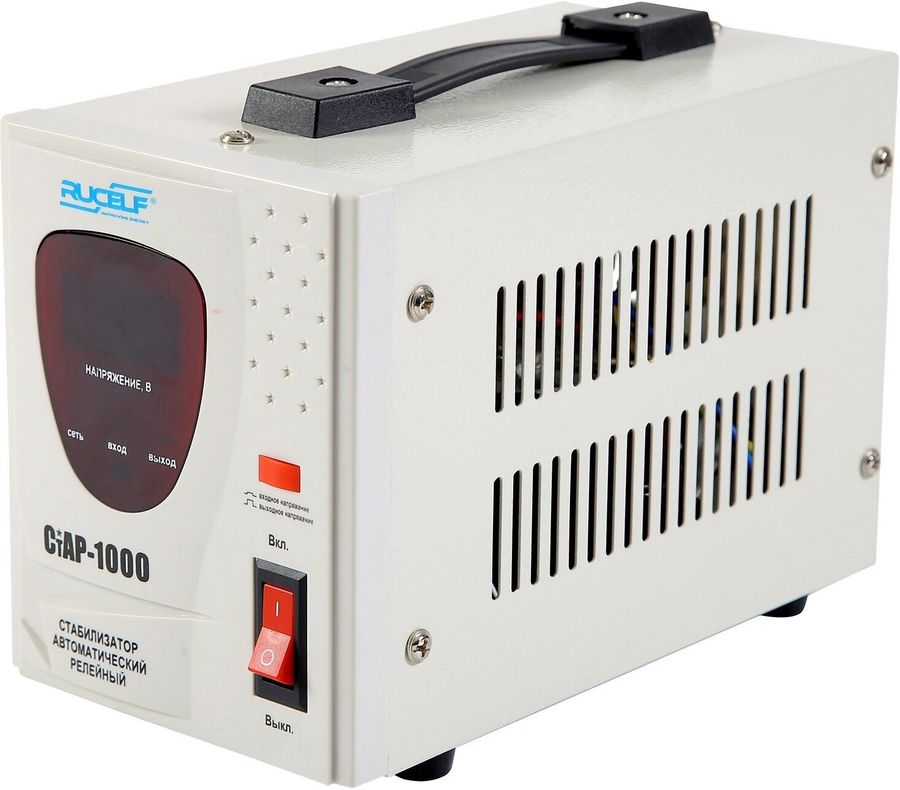 Брэнд RUCELF, Модель СтАР-1000, Тип стабилизации релейная, Тип сети однофазная, Входное напряжение от 140 до 270 В,Рабочая частота сети 50 Гц, Выходное напряжение 220 В ± 6%,Максимальная мощность 0.7 кВт, Полная мощность 1 кВА, Коэффициент полезного действия (КПД) 98%, Охлаждение естественное, воздушное, Рабочая влажность воздуха не более 80%