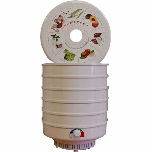 Категория - Электросушитель для овощей и фруктовПроизводитель - Спектр-ПриборМодель - ВетерокНоминальная потребляемая мощность - 0,5 кВт.Номинальное напряжение - 220 В.Класс защиты от поражений электрическим током - II.Количество нагревателей - 1 штНоминальная нагрузка на одном поддоне - 1 кгТемпература воздуха на нижнем поддоне электросушителя - 55-70 °С.Длина электрического шнура, не менее - 1500 мм.Габаритные размеры - 325 х 400.Масса брутто, не более - 3,9 кг.Упаковка - гофрокороб.Технические характеристики:.Мощность, Вт - 500.Максимальная загрузка, кг - 5.Макс. температура, °С - 70.Мин. температура, °С - 35Объем, л - 25